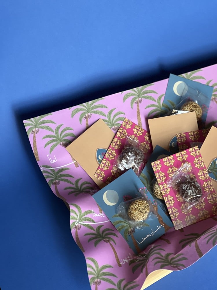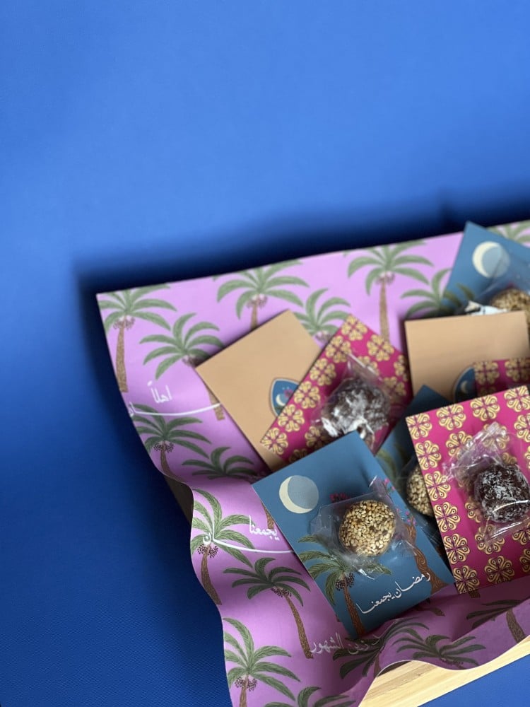 تمر محشي او علب قهوة او معمول مجال الابداع حسب المتوفر لديك
