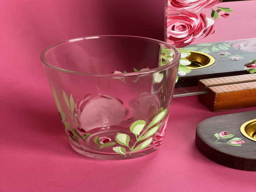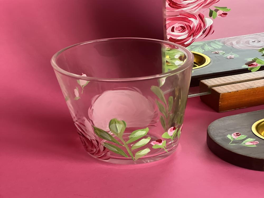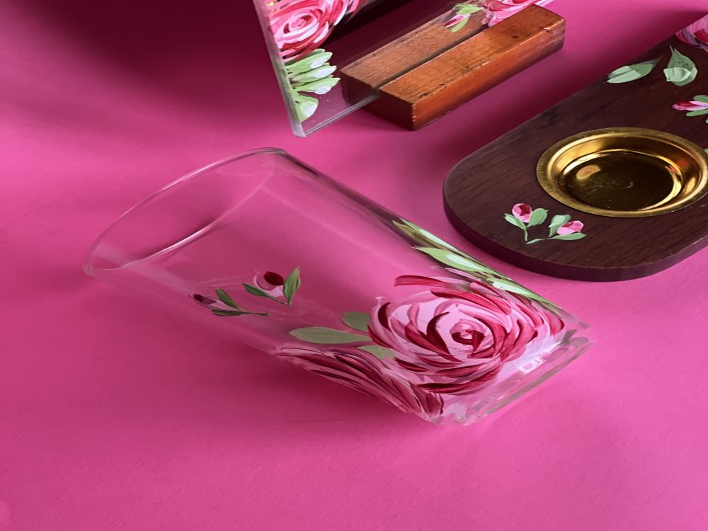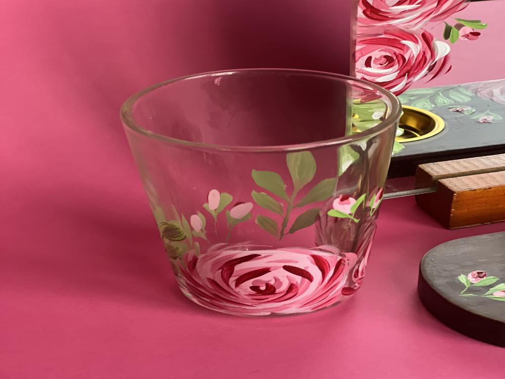 كوب زجاجي برسومات يدوية داخل علبة أنيقة مناسبة للاهداء