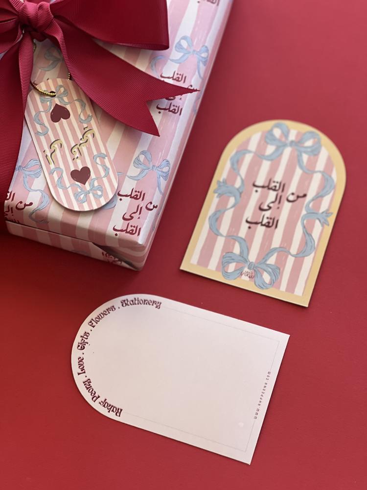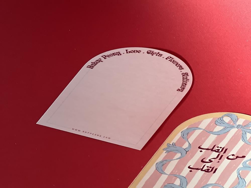 بطاقة مقوسة ذات وجهين وجه تصميم ووجه فارغ مناسب للكتابة