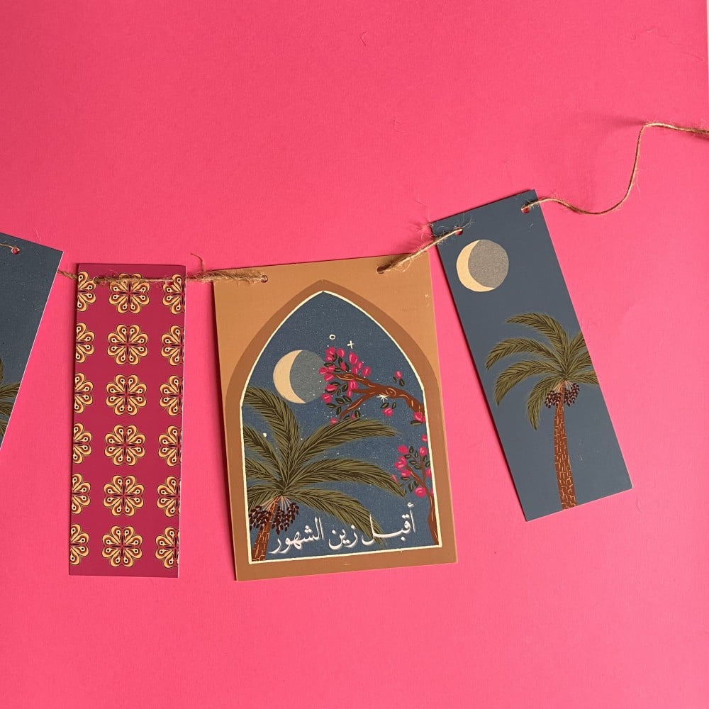 عدد القطع في المغلف 12 اوراق مع خيط خيش للتعليق