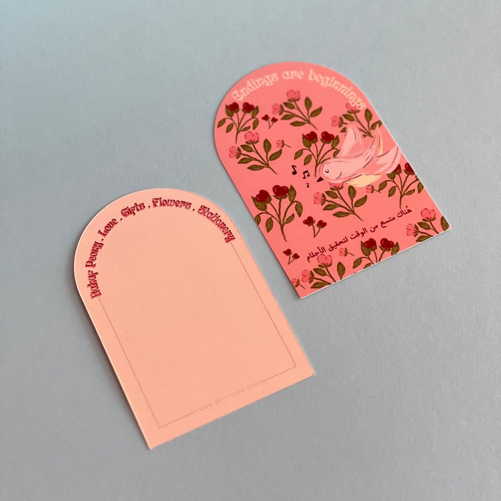 بطاقة مقوسة ذات وجهين وجه تصميم ووجه فارغ مناسب للكتابة