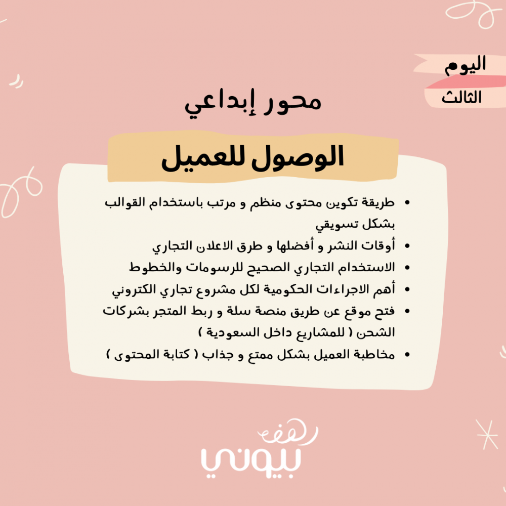 يحق لكل متدربة ساعتين استشارة مع المدربة مقسمة على يومين مختلفة