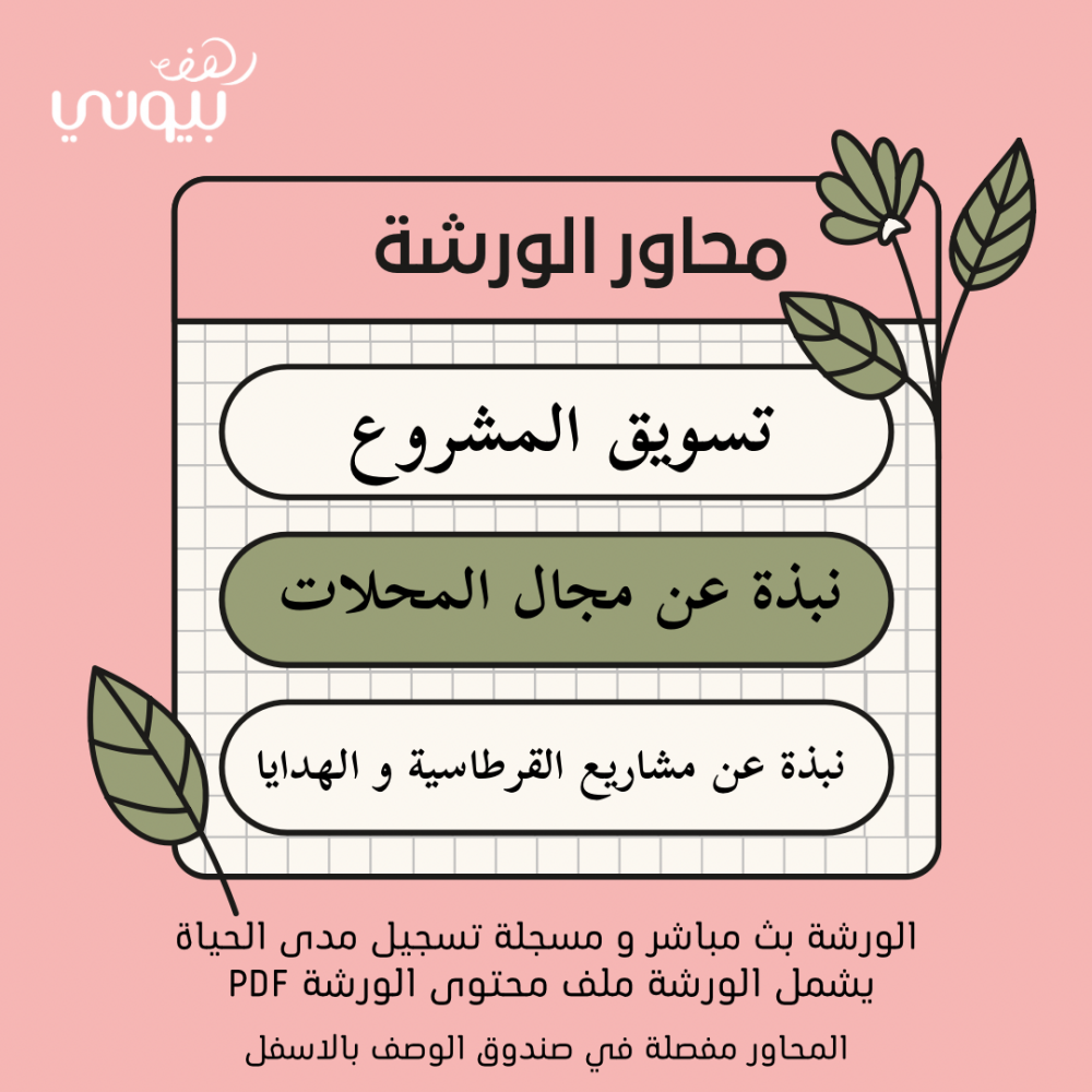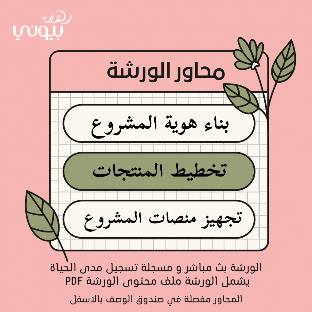 الورشة متعددة المحاور من ترتيب وكتابك وتصميم المدربة رهف محمد مؤسسة رهف بيوني و صاحبة خطوط انتاج منتجات متعددة و مالكة لفرعها على ارض الواقع " رهف بيوني " القرطاسية والهدايا